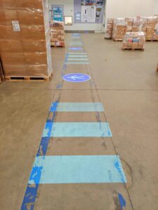 Marquage de passages piétons, zones de stockage ou zones interdites.