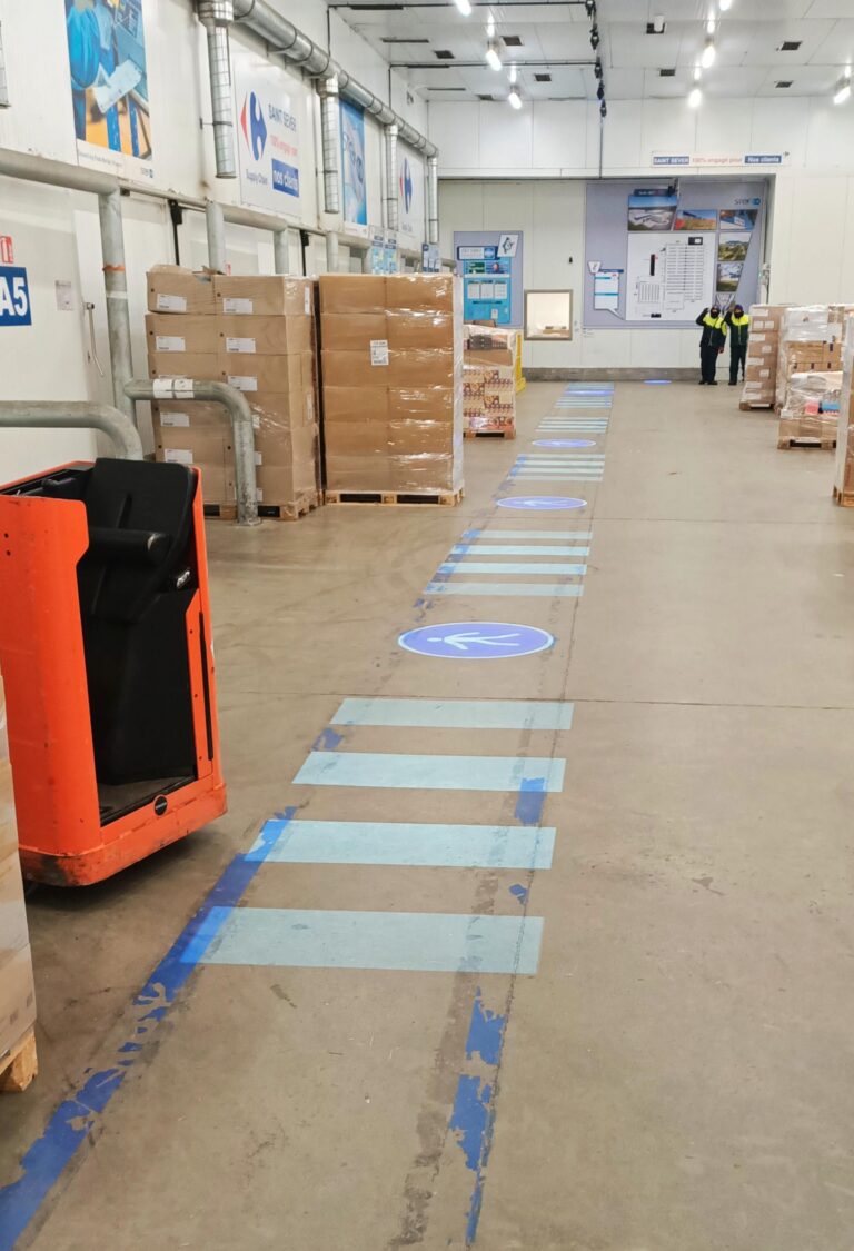 Marquage de passages piétons, zones de stockage ou zones interdites.